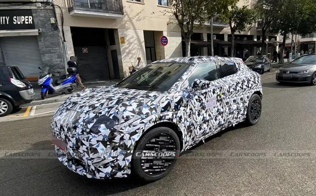 从伪装测试车来看,新车延续了JUKE系列标志性的设计元素。前脸预计保留分体式日行灯布局,并采用多边形主灯组设计,封闭式格栅与分段式进气口彰显其电动身份。车身侧面采用隐藏式前门把手,后门把手继续集成在C柱区域。
